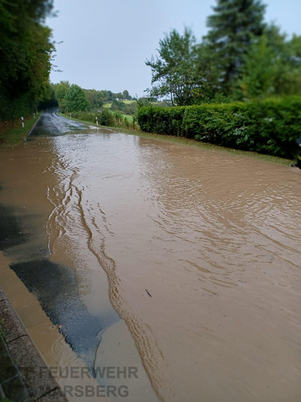 In Marsberg wurde die B7 im Kreuzungsbereich zur Lillers-Straße und zum Schützenberg eine Zeit lang gesperrt: Herabfließende Wassermassen hatten die Fahrbahn mit Schlamm und Geröll verunreinigt, den es zu beseitigen galt. Dies konnte vom Löschzug Marsberg zügig abgearbeitet werden.