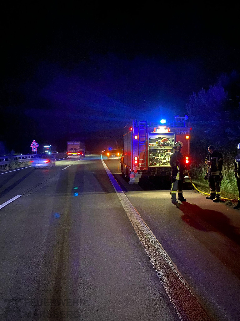 Der Alarm ging um kurz vor 23.30 Uhr bei der Feuerwehr ein, die sich schnell auf den Weg zur Einsatzstelle machten. Im Motorraum eines VW-Transporters hatte es während der Fahrt angefangen zu brennen. Die Insassen reagierten richtig, stellten das Fahrzeug auf einem Standstreifen ab und unternahmen mit eigenen Mitteln eine eigene Brandbekämpfung. So konnte ein Vollbrand des Fahrzeugs verhindert werden, ein Übergreifen auf eine trockene Böschung ebenso.