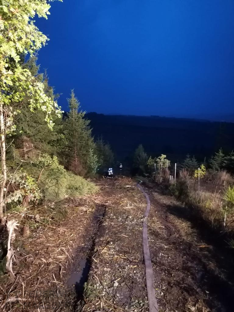 Anschließend erhielt Zugführer Ralph Pohle den Einsatzauftrag des Löschzuges: Als Abschnittsleiter für den Einsatzabschnitt „Nord“ – einer von insgesamt drei Einsatzabschnitten – bestand der Auftrag darin, eine Riegelstellung auf einem ca. 300m langen Waldweg zu betreiben: Aufgrund der bevorstehenden Dämmerung und des aufziehenden Gewitters konnte der Löschhubschrauber und die Drohne der Feuerwehr Sundern nicht weiter eingesetzt werden, so dass die Einsatzleitung entschied, mit Riegelstellungen eine Ausbreitung des Brandes zu verhindern.