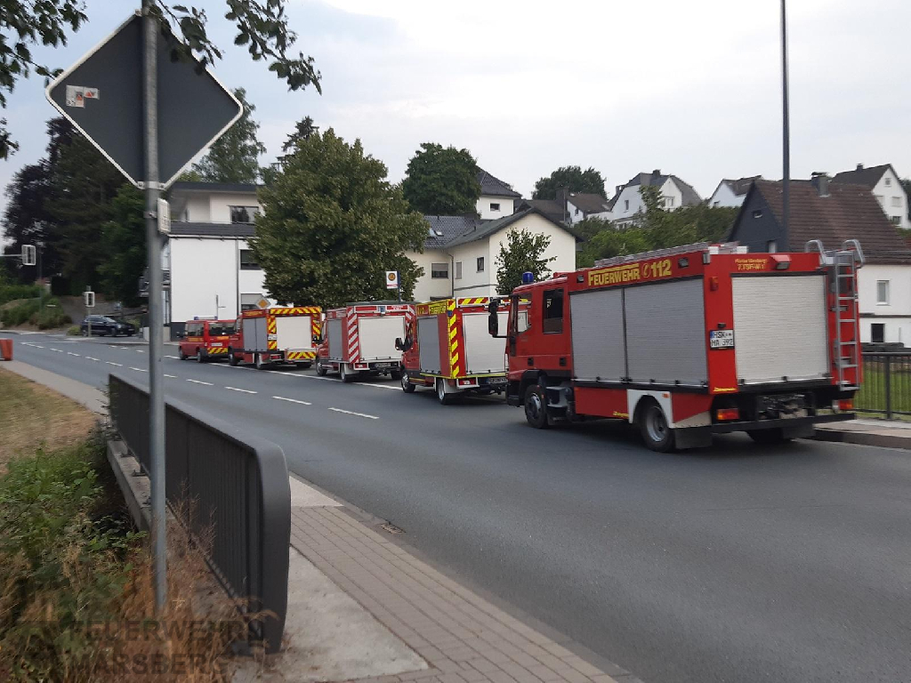 Da eine sehr hohe Anzahl an Einsatzkräften und Gerät benötigt wurde, waren neben den drei Wasserförderzügen aus dem HSK, den Kreisen Unna und Paderborn auch überörtliche Löschzüge aus allen Städten und Gemeinden des Hochsauerlandkreises im Einsatz, ebenso Wehren aus benachbarten Kreisen. Auch ein Löschhubschrauber der Polizei wurde eingesetzt.