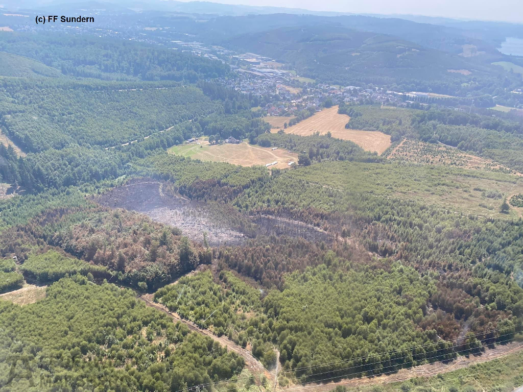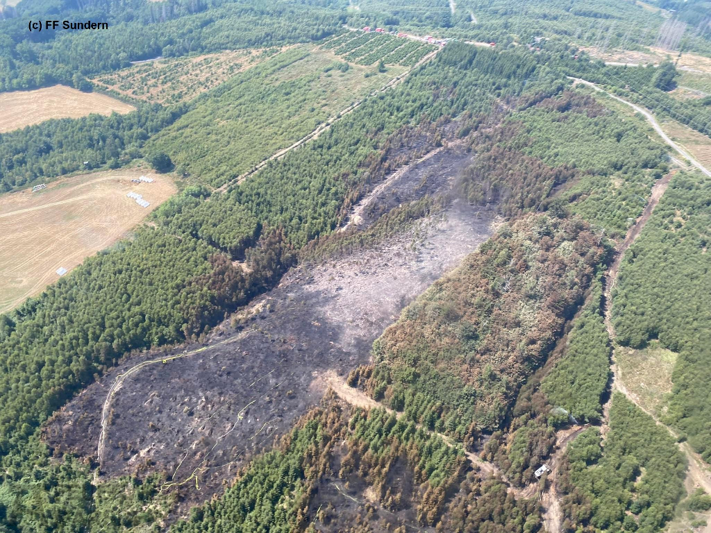 Stemel / Marsberg: Ein großer Waldbrand im Sunderner Ortsteil Stemel, nahe der Sorpetalsperre, hat ab dem Mittag des 19.7.2022 mehrere Tage lang mehrere hundert Einsatzktäfte von Feuerwehr, Rettungsdienst, Hilfsorganisationen und Polizei in Atem gehalten: Mehr als 10 Hektar Waldfläche waren betroffen, bilanzierte die Einsatzleitung zwei Tage später.