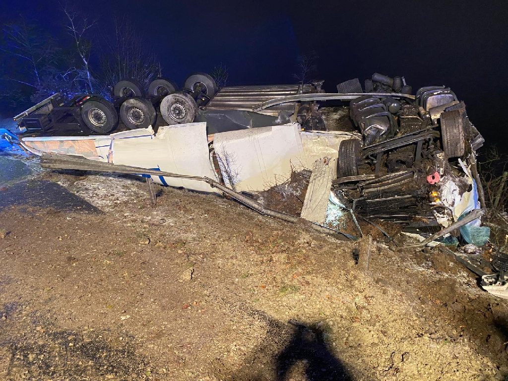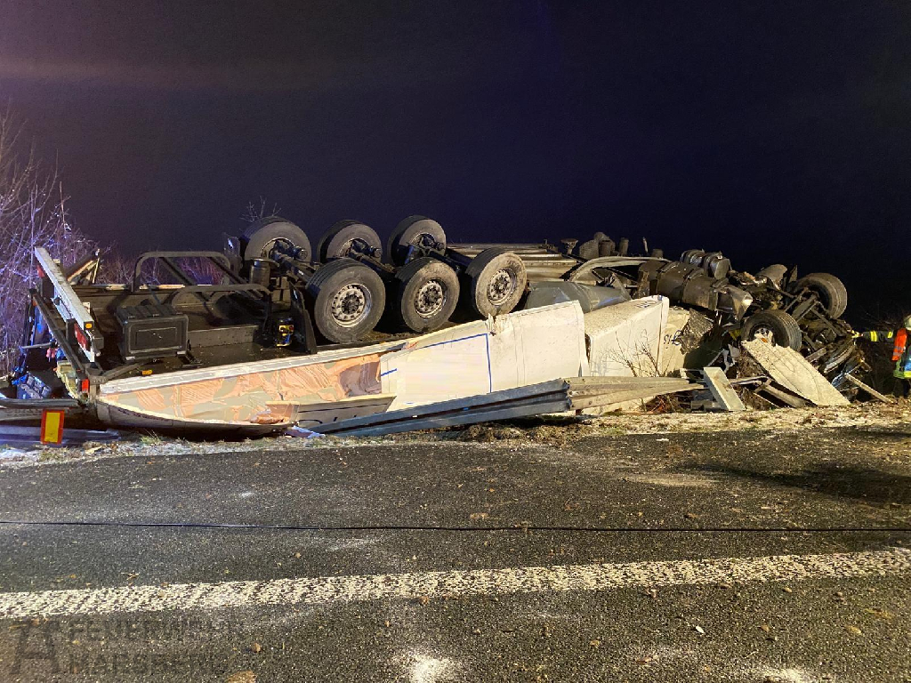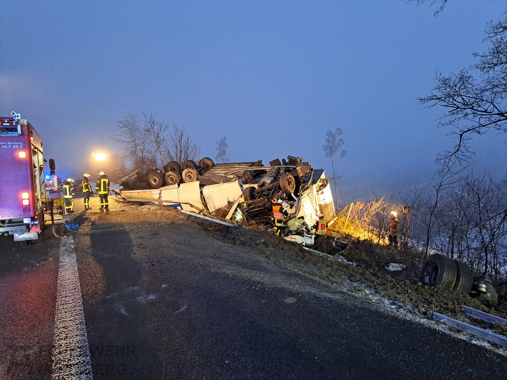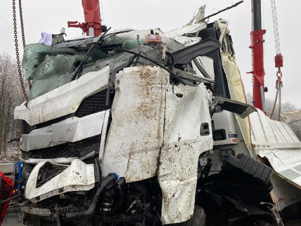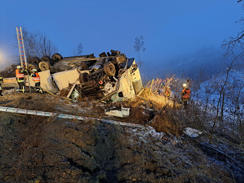 A44: LKW-Unfall auf eisglatter Fahrbahn