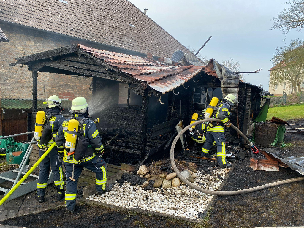 Oesdorf: Ein Brand einer Gartenhütte in Marsberg Oesdorf, sorgte am 27.4.2023 um 19 Uhr für einen Einsatz der Feuerwehr. Zunächst wurden die Löschgruppen Oesdorf und Meerhof alarmiert. Beim Eintreffen der ersten Einsatzkräfte stand die Gartenhütte bereits im Vollbrand. Schnell wurden die Löschgruppe Westheim, die Fachgruppe Drohne und Hygienekomponente nachgefordert.
