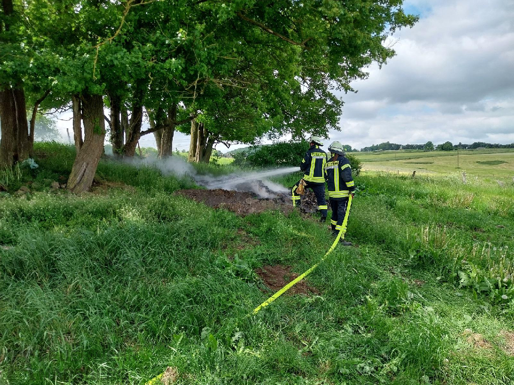Am Freitag, den 2.6.2023, wurde die Löschgruppe Giershagen zu einem Abraumbrand nahe der Schützenhalle alarmiert. Einweiser führten die Einsatzkräfte an die Brandstelle, wo ein kleiner Haufen Abraum brannte. Unter Vornahme des Schnellangriffs wurde der Brand schnell gelöscht.