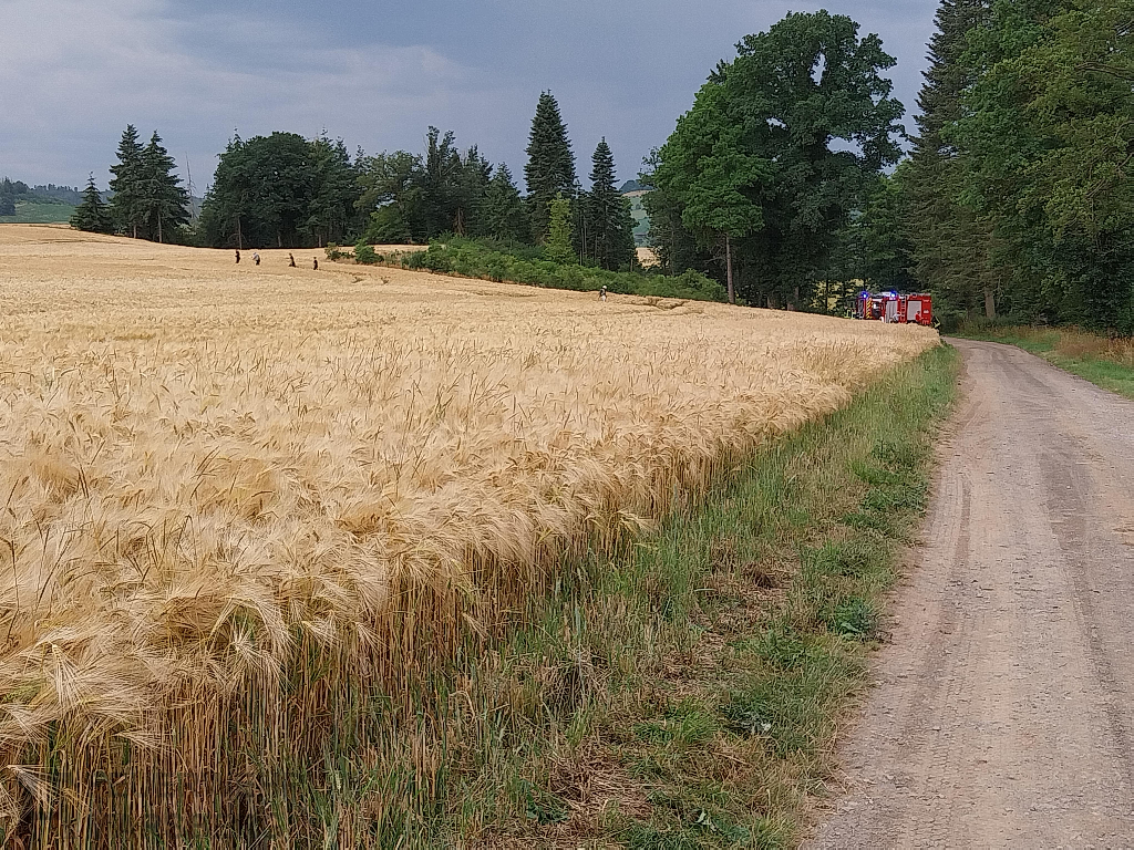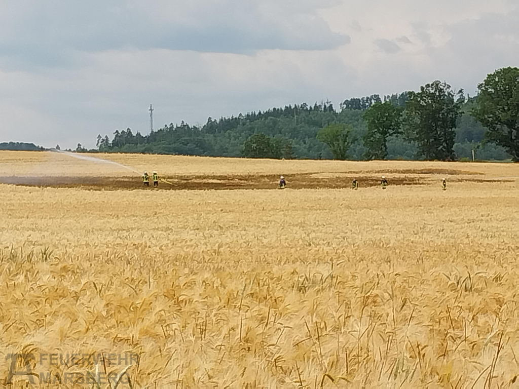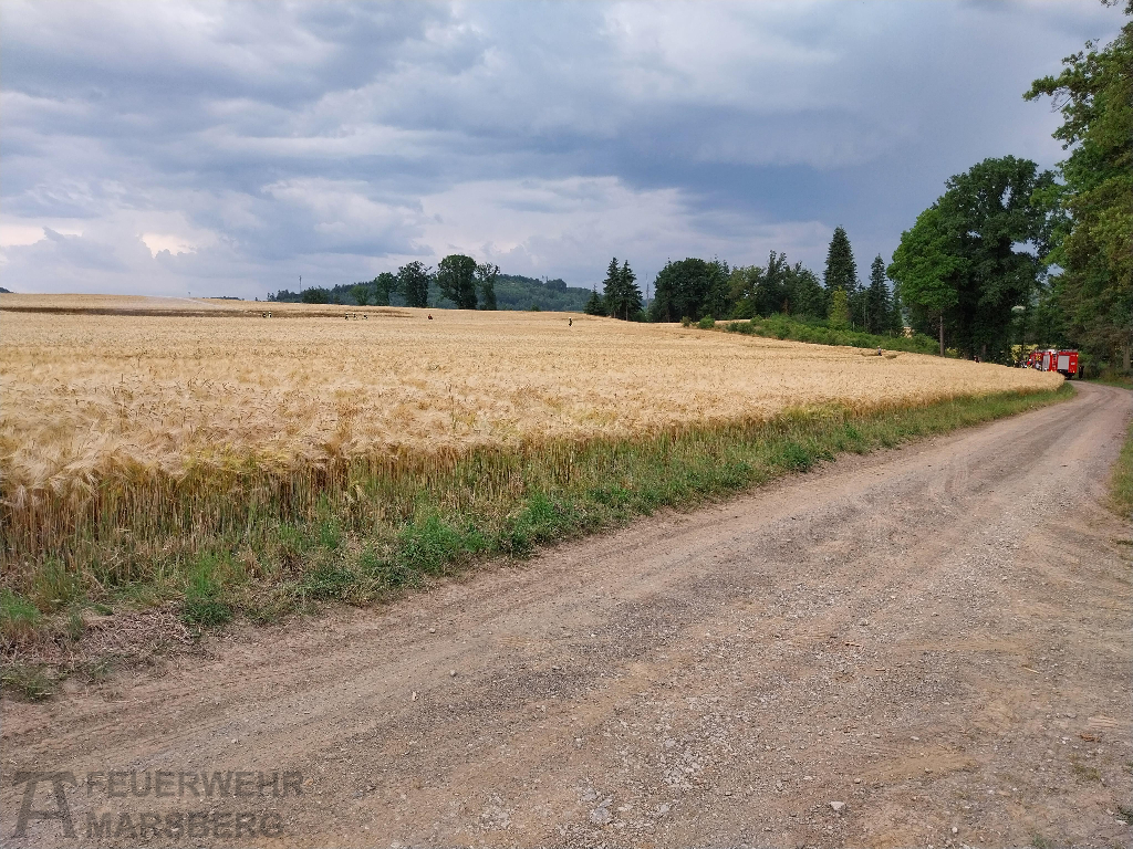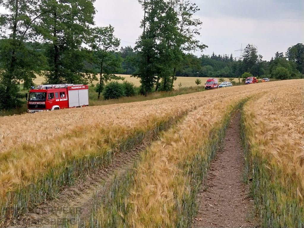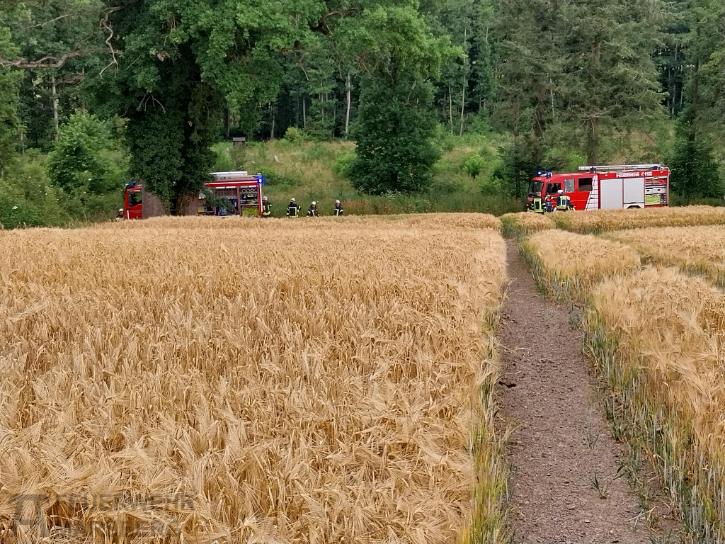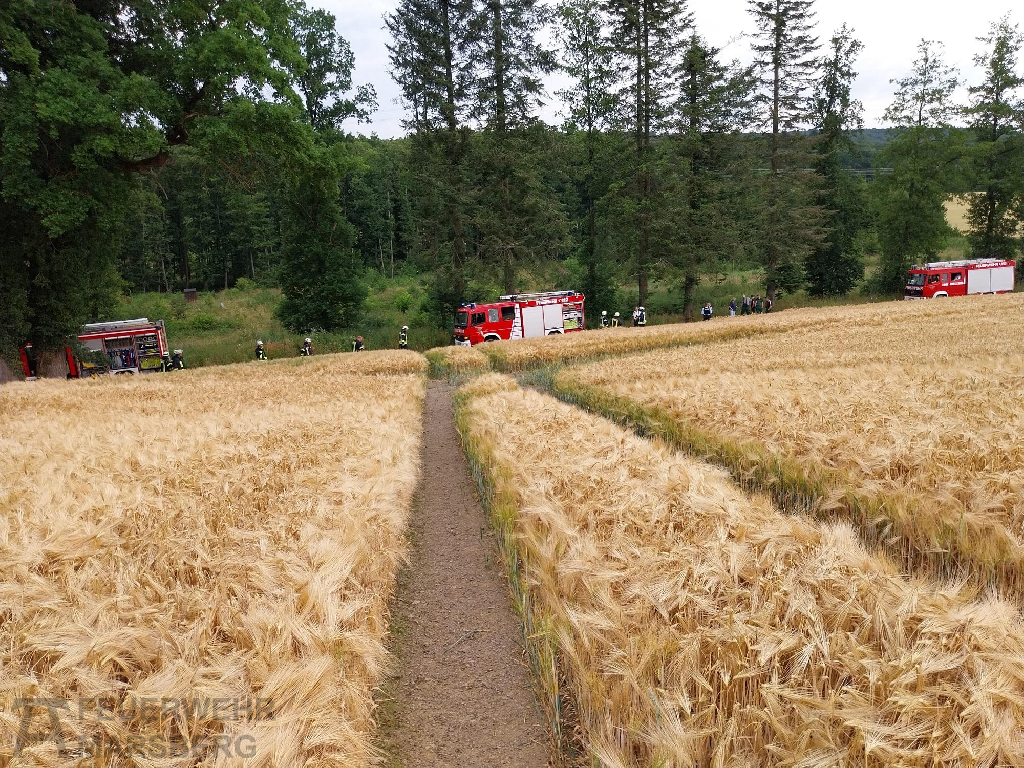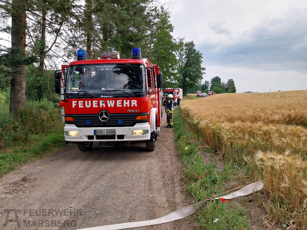 Um 17.15 ging der erste Alarm ein, ein Waldbrand in Bredelar war gemeldet. Die Löschgruppen aus Bredelar, Beringhausen und Essentho sowie der Löschzug Marsberg und die Fachgruppe Drohne rückten aus. Vor Ort ergab die Erkundung, dass ca. 500m² Getreidefeld brannten.