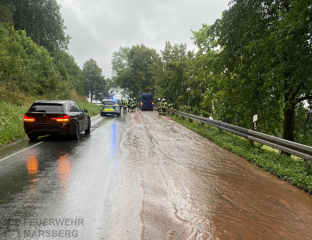 Da keine Person eingeklemmt war, konnte sich die Feuerwehr um die Sicherung der Einsatzstelle, den Brandschutz und die Verhinderung einer weiteren Ausbreitung der Betriebsstoffe kümmern. Durch den einsetzenden starken Regen verteilten sich die Betriebsstoffe sehr stark, so dass der Löschzug Marsberg mit dem Gerätewagen Logistik nachgefordert wurde. Da der Regen Öl und Betriebsstoffe in den angrenzenden Grünstreifen fließen ließ, wurde zudem die Untere Wasserbehörde hinzugezogen. Die Straße musste aufgrund des Vorfalls zeitweise komplett gesperrt werden.