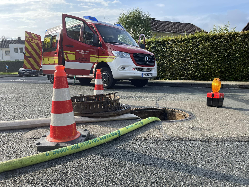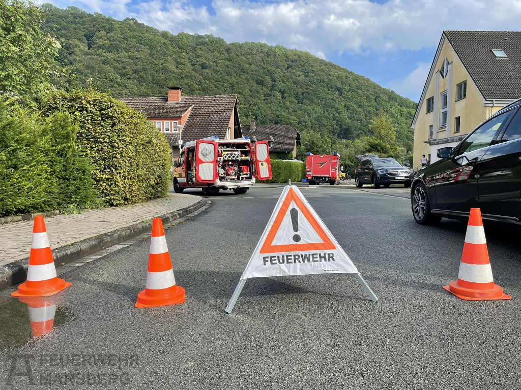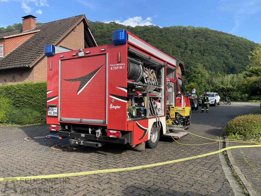 Marsberg: Die Folgen eines Starkregens haben am Nachmittag des 16.8.2023 die Feuerwehren aus Marsberg, Obermarsberg, Erlinghausen, der Rathauswache und Westheim gefordert.
