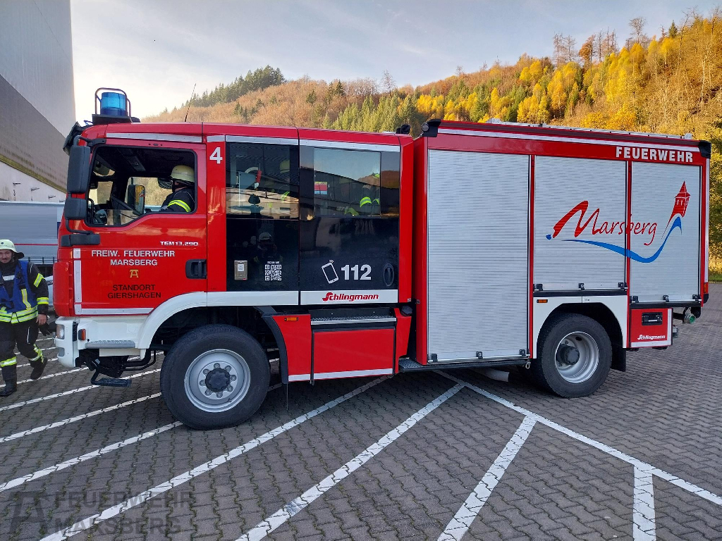 Zu dem Einsatz rückte auch die Löschgruppe Bredelar an; sie wurde aus einem Paralleleinsatz in der Nähe heraus zur Einsatzstelle in Giershagen beordert.