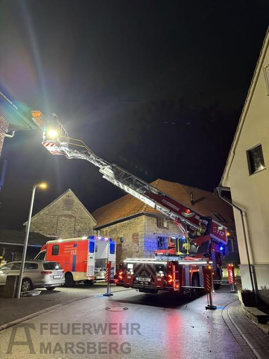 Die Drehleiter aus Marsberg wurde zur Unterstützung des Rettungsdienstes nach Erlinghausen angefordert.