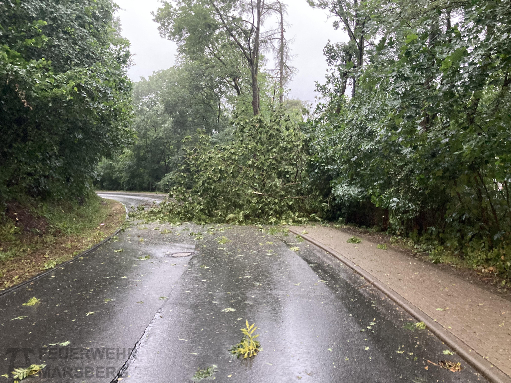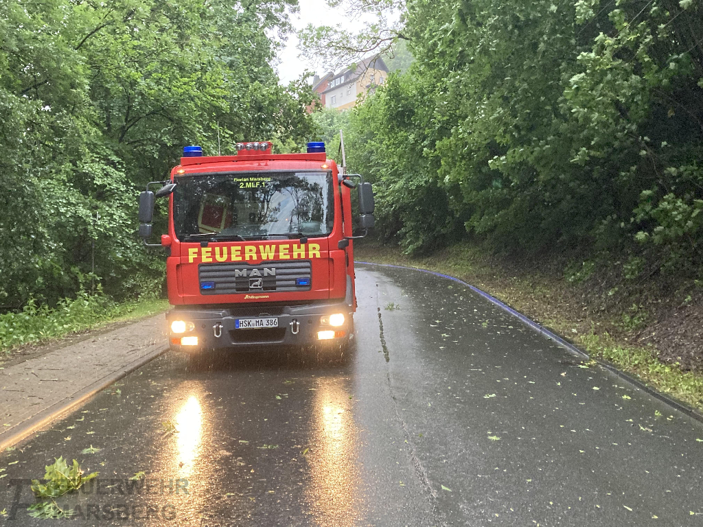 Am heutigen Freitagmorgen wurde um 05:26Uhr die Löschgruppe Obermarsberg zu einem Sturmschaden "Baum auf Fahrbahn" alarmiert. Der Baum lag über beide Fahrspuren, sodass dieser mittel Motorkettensäge zerkleinert werden musste. Hierzu wurde zuerst die Straße Bülberg komplett gesperrt, sodass die Einsatzkräfte sicher arbeiten konnten. Nach der Beseitigung des Baumes, wurde die Fahrbahn gesäubert und für den Verkehr freigegeben.