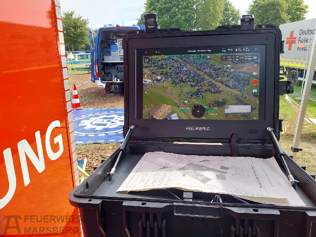 Am Höhepunkt des Schützenfestes, dem Sonntag, an dem mit den meisten Gästen auf Festgelände und Ortskern gerechnet wurde, waren die Sicherheitsvorkehrungen sogar noch umfangreicher. Die Brandsicherheitswache und der Sanitätsdienst vor Ort wurden verdoppelt, da alle Festzelte in Benutzung waren. Auch im Ort waren Sicherungsposten der Feuerwehr platziert. In Marsberg und Essentho waren von 11-21 Uhr die Gerätehäuser besetzt, um bei Einsätzen im Stadtgebiet zügig ausrücken zu können. Für die Unterstützung der Feuerwehr und des Sanitätsdienstes stellte der THW-Ortsverband Büren den Überwachungstrupp Drohne, der mit zwei Drohnen Festgelände und Ort überwachte. Durch die Feuerwehr Delbrück war ein Krad-Melder im Einsatz, der bei Zwischenfällen im Ort die Rettungskräfte bei Bedarf einweisen und durch den Ortsbereich führen konnte – schließlich war der Ortskern für den Verkehr komplett gesperrt. Die Feuerwehr aus Holtheim unterstützte die Meerhofer Kameradinnen und Kameraden, die an den ersten drei Festtagen auf dem Festgelände die Brandsicherheitswache stellte und ihr Löschfahrzeug besetzt hielt.