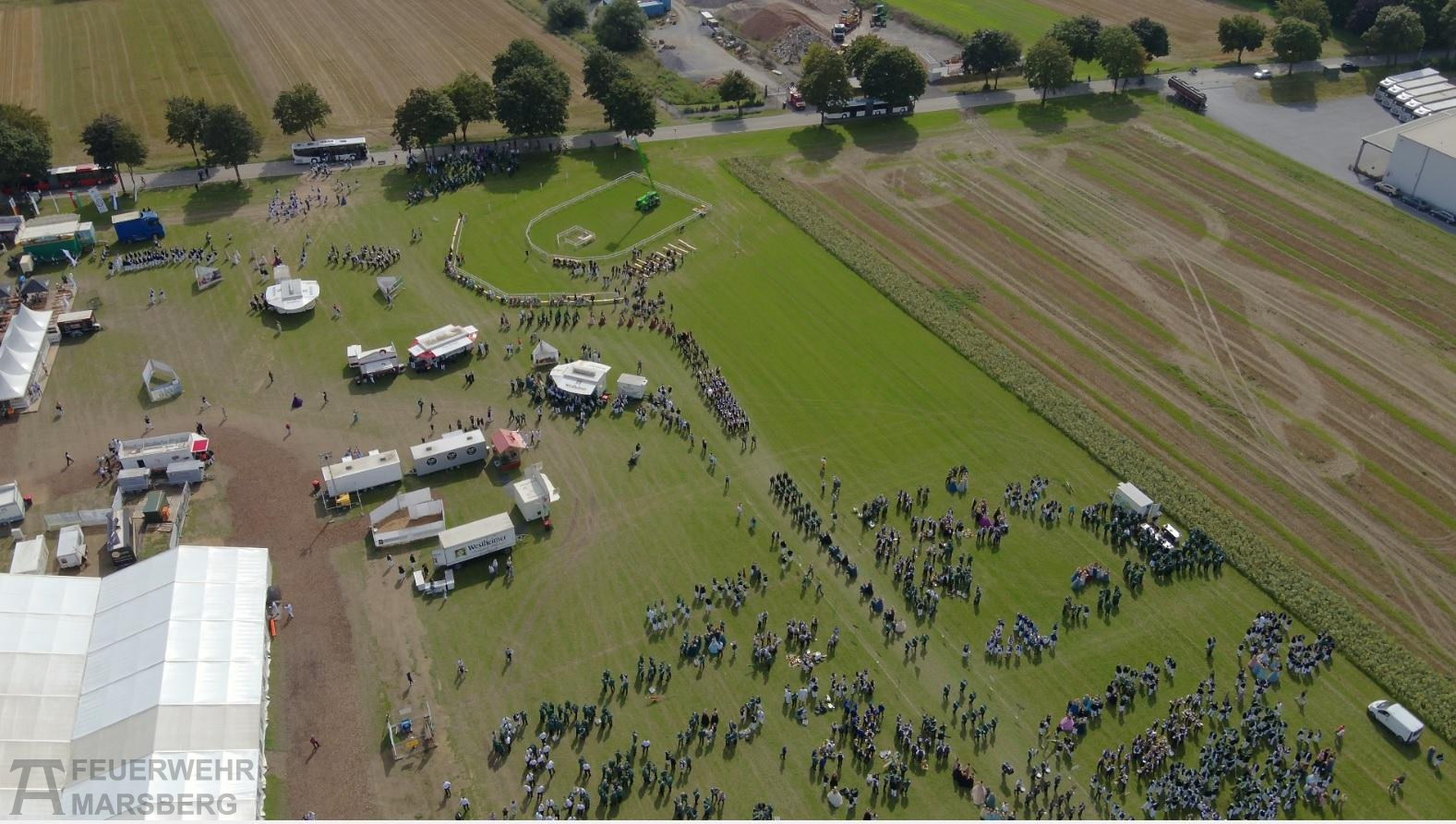 Meerhof: Eine ganz besondere Großveranstaltung fand am ersten Septemberwochenende im Marsberger Ortsteil Meerhof statt: Dort wurde das 64. Kreisschützenfest des Altkreises Büren bei bestem Wetter und toller Atmosphäre gefeiert. Tausende Gäste besuchten das Fest an insgesamt vier Veranstaltungstagen – vom 1. bis 4. September 2023 stand Meerhof ganz im Zeichen dieses einmaligen Ereignisses, das mit dem Festzug und Vogelschießen am 3. September seinen Höhepunkt fand. Um für die Sicherheit der Gäste zu sorgen war ein umfangreiches Sicherheitskonzept nötig – Feuerwehr, Deutsches Rotes Kreuz, Technisches Hilfswerk sowie Polizei und Ordnungsamt waren an allen Tagen mit Sicherheitswachen vor Ort.