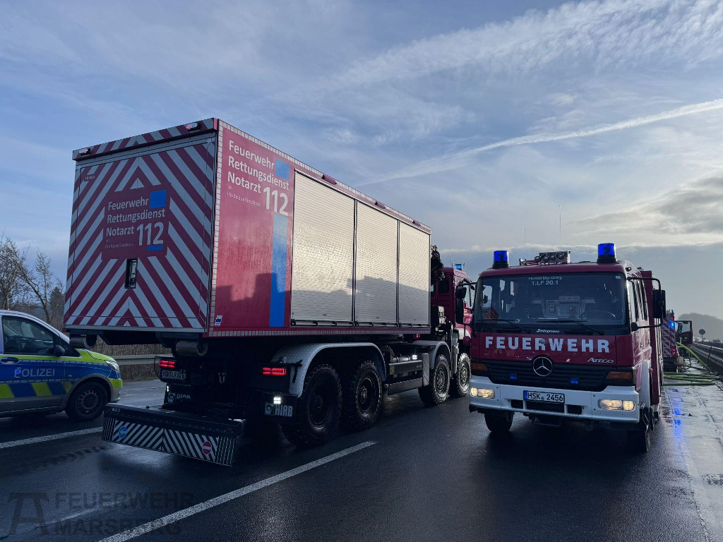 Seitens der Feuerwehr Marsberg waren die Einheiten aus Meerhof, Essentho, Oesdorf, Westheim, Giershagen, Marsberg und Leitmar im Einsatz, ebenso die Fachgruppe Drohne und die Führungsunterstützung. Aus dem ZFR Meschede rückte ein Sonderfahrzeug für umfangreiche technische Rettung an. Auch das Team der Psycho-Sozialen-Notfallversorgung wurde nachgefordert. Insgesamt waren 50 Einsatzkräfte der Feuerwehr im Einsatz. Über 14 Stunden bis zum späten Nachmittag des 23.1.2026 zog sich der Einsatz hin.