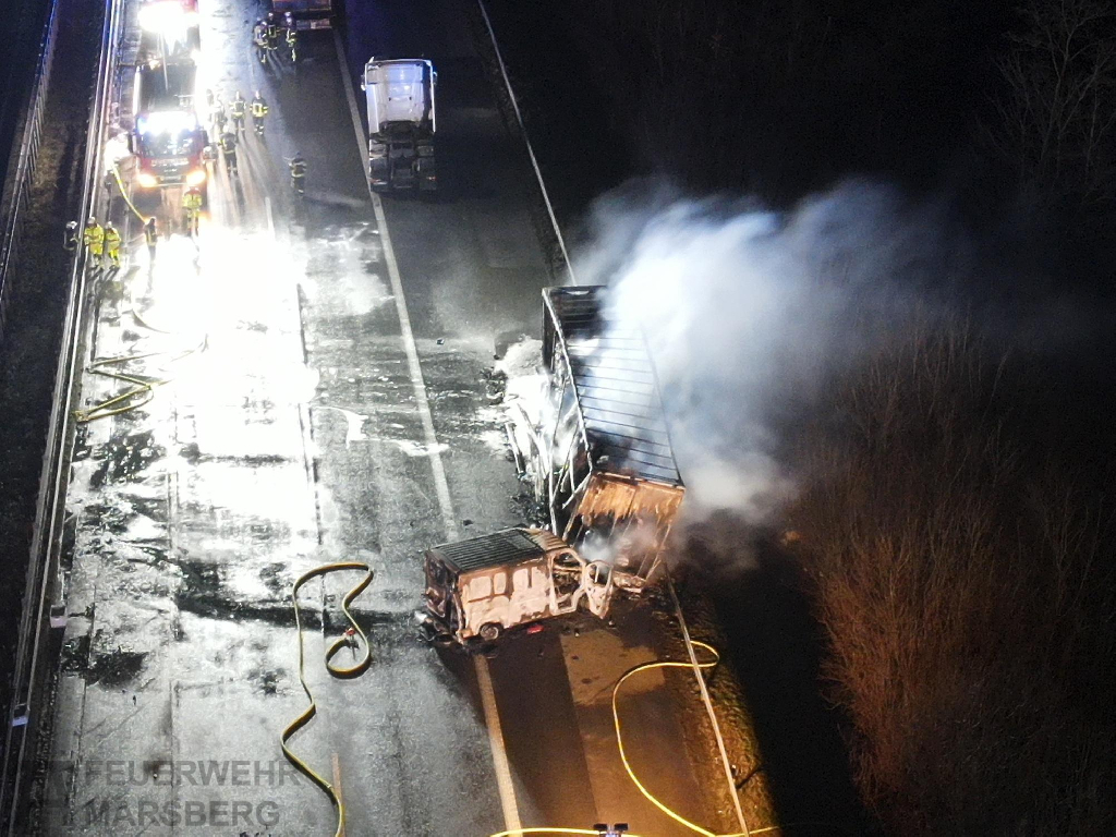 Gegen 1.45 wurden zuerst Feuerwehren aus dem Stadtgebiet Warburg auf die A44 in Richtung Kassel geschickt, auf dieser Richtung war der LKW in Brand geraten. Gegen 2.15 wurden dann Einheiten der Feuerwehr Marsberg auf die A44 in Fahrtrichtung Kassel alarmiert.