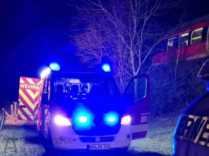 Unter dem Stichwort "Person vor Zug" mussten unter anderem die Feuerwehren aus Marsberg und Obermarsberg am 20.1.2021 zum Bahnübergang "Lange Ricke" ausrücken.